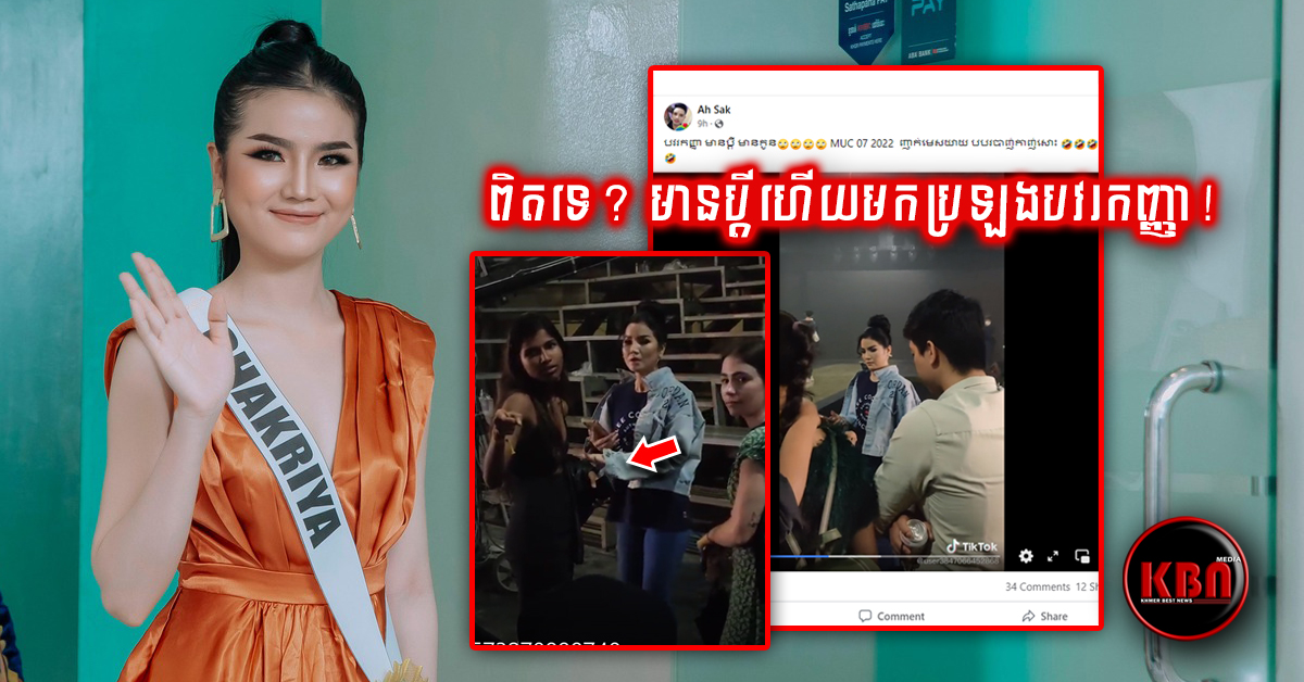 វិឌីអូមួយត្រូវគេយកមកបង្ហោះចែកចាយគ្នា បានធ្វើការជូនដំណឹងឱ្យដឹងថា មានបវរកញ្ញាMiss Universe Cambodia 2022 មានរូសម្រស់ស្រស់ស្អាតម្នាក់ការពិតមានប្តីលាក់បាំងបែរជាចូលរួមមកប្រឡងទៀតដល់ថ្នាក់បុរសជាប្តីតាមដល់កន្លែងកម្មវិធីប្រកួតក្នុងស្ថានីយទូរទស្សន៍បាយ័ន កាលពីថ្ងៃទី១០ ខែមិថុនា ឆ្នាំ២០២២ ពេលកំពុងហាត់សម។