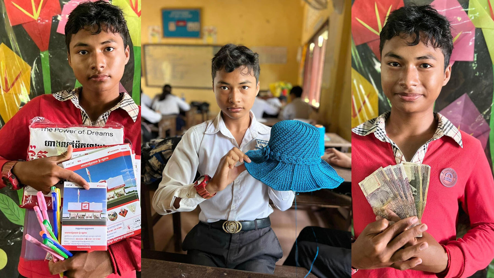 ប្អូនបានលើកឡើងបន្តថា «ក្រៅពីការងារស៊ីឈ្នួលកោសស្រកាត្រី ក្នុងថ្ងៃសិក្សាររៀនសូត្រ នៅពេលម៉ោងចេញលេង ប្អូនមិនបានចេញទៅក្រៅដើរលេងដូចគេឯងឡើយ គឺប្អូនឆ្លៀតចាក់មួកលក់ ដើម្បីបានលុយយកមកទុកទិញសម្ភារៈសិក្សា និងនៅសល់យកទៅអោយម្ដាយ ដើម្បីដោះស្រាយជីវភាពគ្រួសារប្រចាំថ្ងៃ»។