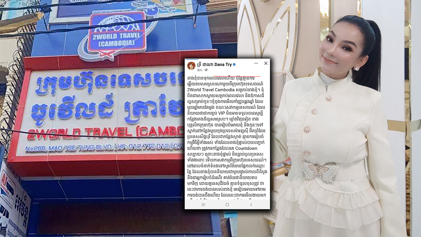 ក្រោយបង្ហោះសារនិងទម្លាយឈ្មោះក្រុមហ៊ុនទេសចរណ៍ដ៏ល្បីឈ្មោះ 2WORLD TRAVEL CAMBODIA រួចហើយមហាជនមានការចាប់អារម្មណ៍និងភ្ញាក់ផ្អើលជាខ្លាំង មិននឹកស្មានថា ក្រុមហ៊ុនល្បីមួយនេះចេះធ្វើស៊ីលោកជំទាវឧកញ៉ាល្បីឈ្មោះ ទ្រី ដាណា បានបែបនេះសោះ។ មហាជនក៏កំពុងរង់ចាំមើលថា ក្រុមហ៊ុនទេសចរណ៍មួយនេះ មានការបកស្រាយនិងតបតវិញ បែបណាវិញ ក្រោយអ្នកនាង ទ្រី ដាណា ធ្លាប់បានទុកពេលវេលារួចហើយមិនឃើញមានដំណោះស្រាយឡើយ ខណៈក្រុមហ៊ុនបានលក់សេវាកម្មតម្លៃខ្ពស់ តែផ្តល់ជូនភ្ញៀវផ្ទុយស្រឡះទៅវិញ៕