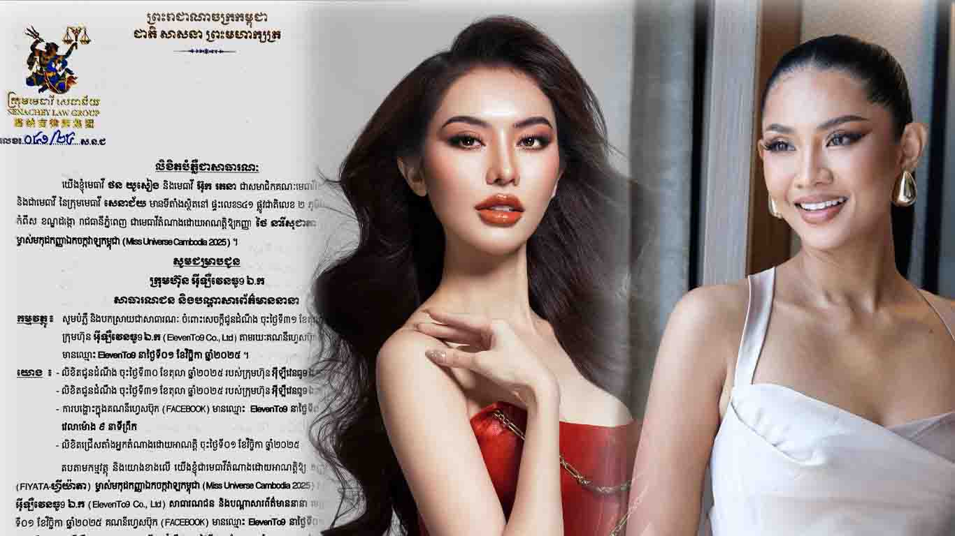 លិខិតបំភ្លឺជាសាធារណៈ របស់ជាក្រុមមេធាវីតំណាងដោយអាណត្តិឱ្យកញ្ញា ថៃ នារីសុជាតា (FIYATA-ហ្វីយ៉ាតា) ម្ចាស់មកុដកញ្ញាឯកចក្កវាឡកម្ពុជា (Miss Universe Cambodia 2025) ដើម្បីបំភ្លឺ និងបកស្រាយជាសាធារណៈ ចំពោះសេចក្តីជូនដំណឹង ចុះថ្ងៃទី៣១ ខែតុលា ឆ្នាំ២០២៥ របស់ក្រុមហ៊ុន អ៊ីឡឺវេនធូ9 ឯ.ក (ElevenTo9 Co., Ltd) តាមរយៈគណនីហ្វេសប៊ុក(FACEBOOK) មានឈ្មោះ ElevenTo9 នាថ្ងៃទី០១ ខែវិច្ឆិកា ឆ្នាំ២០២៥ ជាសាធារណៈ ដែលមានខ្លឹមសារនាំឱ្យមានការភ័ន្តច្រឡំមកលើ កញ្ញា ថៃ នារីសុជាតា (FIYATA-ហ្វីយ៉ាតា) ម្ចាស់មកុដកញ្ញាឯកចក្កវាឡកម្ពុជា (Miss Universe Cambodia 2025) និងធ្វើឱ្យប៉ះពាល់យ៉ាងខ្លាំងដល់កេរ្តិ៍ឈ្មោះ កិត្តិយស សេចក្តីថ្លៃថ្នូរ ប្រជាប្រិយភាព និងការងារ ។